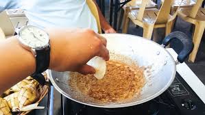 of the mixture into the heated wok and wait for bubbles or the “buwa”